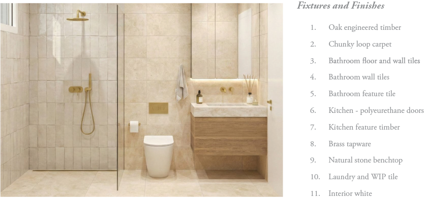 Every element in these open plan homes has been thoughtfully crafted, from natural stone islands and benchtops to louvered windows and brass details. A simple expression of architectural boldness, warmth and organic materiality.